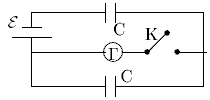 26. Какой заряд протечет через гальванометр, если замкнуть ключ К на изображенной схеме?