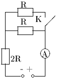 30. В приведенной схеме (ключ разомкнут) амперметр показывает силу тока I1. Если замкнуть ключ К, то он покажет I2. Определите соотношение токов I1 и I2.