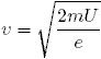 25. Разность потенциалов между анодом и катодом вакуумного диода равна U. Какой скорости достигает покоящийся электрон, двигаясь от катода к аноду? (m и e – масса и заряд электрона).
