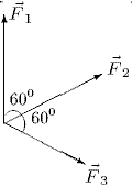4. Найдите модуль и направление равнодействующей трех сил по 3Н каждая. Углы между первой и второй, а также между второй и третьей силами равны 60°.