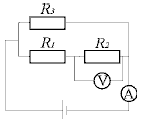 30. В приведенной схеме R1=40 Ом, R2=60 Ом и R3=50 Ом. Каково показание вольтметра (В), если показание амперметра равно 6 А? Внутренним сопротивлением источника пренебречь.