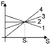 2. На рисунке представлены графики зависимости силы, действующей на тело в направлении движения, от пройденного пути. Какая сила совершает наибольшую работу на пути S0?