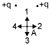 16. Какое направление имеет вектор напряженности электрического поля, созданного двумя одинаковыми положительными точечными зарядами в точке А?