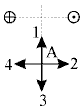 20. Определите направление индукции магнитного поля в точке А, создаваемого одинаковыми по величине токами, текущими в противоположных направлениях по двум параллельным проводникам (см.рис).