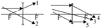 32. Ход каких лучей из числа изображенных на рисунках соответствует законам геометрической оптики?