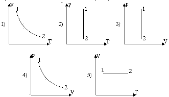 38. Идеальный газ перешел из одного состояния в другое по закону P1/T1 = P2/T2. На каких рисунках правильно показан этот процесс?  |