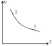 38. На рисунке в координатах V-T приведена кривая перехода идеального газа из состояния 1 в состояние 2. Как изменяется давление газа?