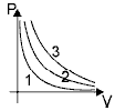 42. На рисунке приведены три изотермы для одной и той же массы газа. Какая изотерма соответствует наибольшей температуре?