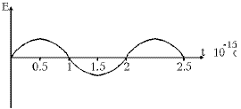 53. На рисунке приведен график зависимости изменения напряженности электрического поля световой волны, распространяющейся в среде с показателем преломления 1,5 от времени. Определите длину волны (м) в этой среде.