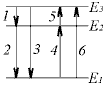 56. На рисунке приведена условная схема энергетических уровней некоторого атома и несколько квантовых переходов между ними. Какой стрелкой обозначен переход с испусканием фотона с наибольшей длиной волны?