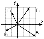 14. Определите, какой угол с горизонтальной осью составляет равнодействующая следующих четырех сил (см. рис.).