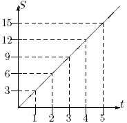 6. На рисунке приведен график зависимости пути, пройденного всадником, от времени. Определите скорость движения всадника (м/с) в промежутке времени 3-5 с.